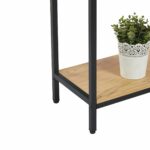 Stylowa konsola w stylu loft to funkcjonalny i elegancki mebel, który doskonale sprawdzi się w przedpokoju, salonie, sypialni lub biurze. Połączenie płyty w kolorze dąb naturalny z czarnym metalowym stelażem nadaje całości nowoczesny, industrialny charakter, pasujący do wnętrz loftowych, nowoczesnych i skandynawskich.