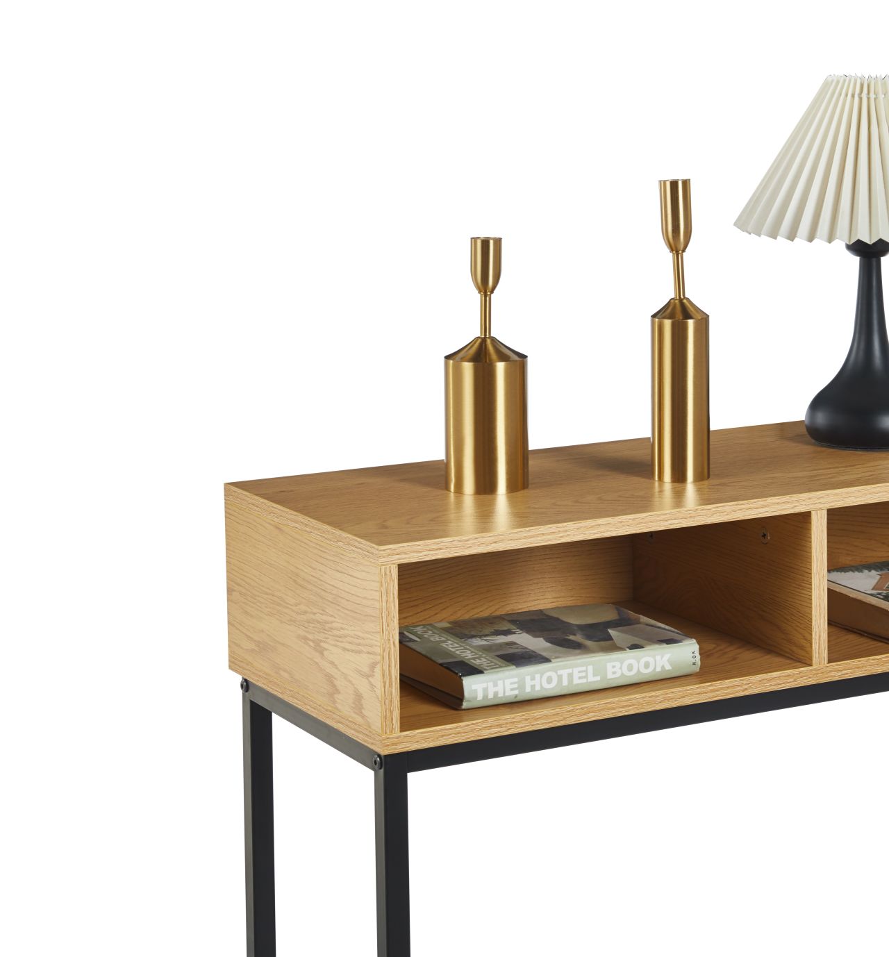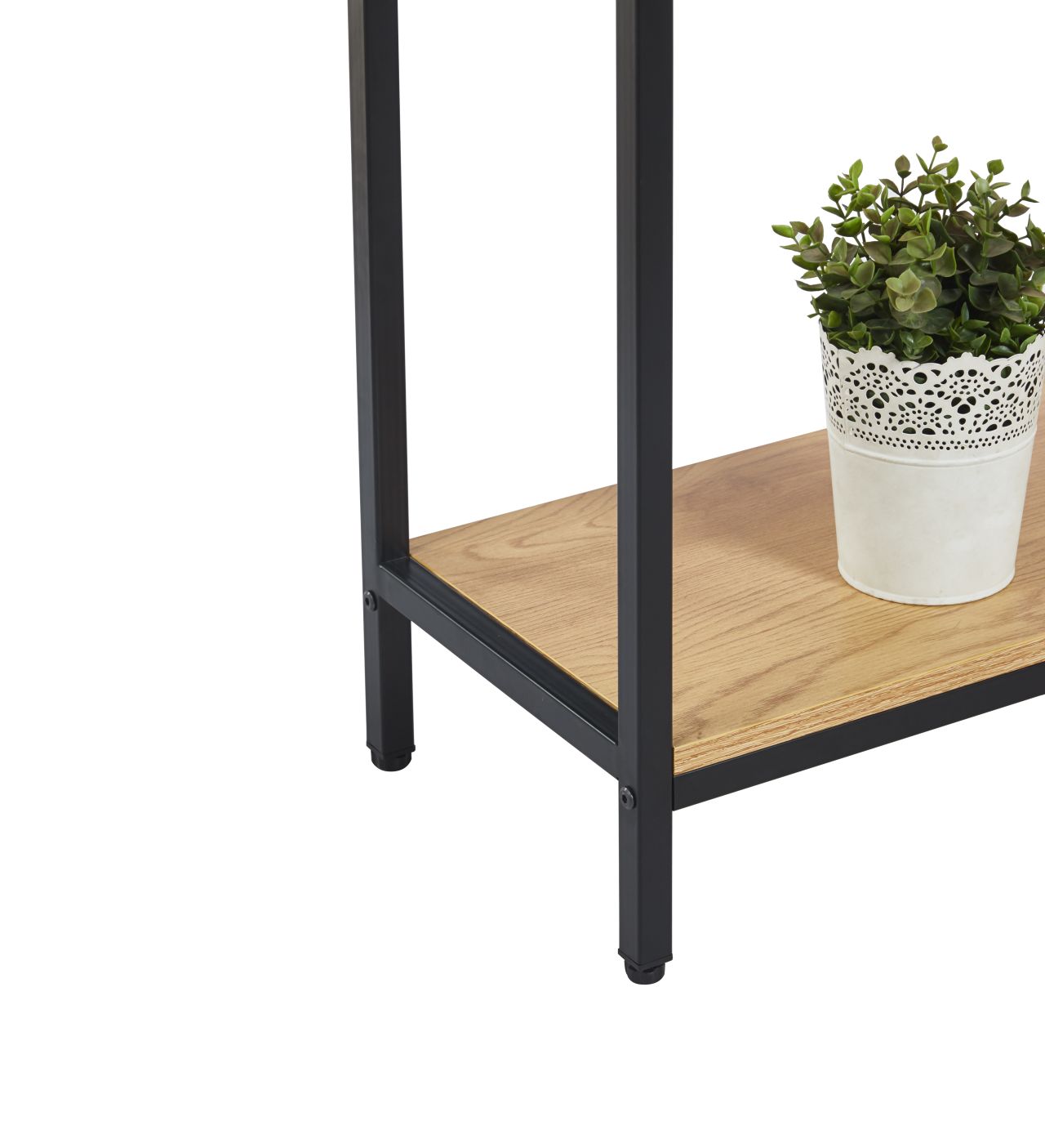 Korpus wykonany z trwałej płyty wiórowej laminowanej jest odporny na codzienne użytkowanie i łatwy w czyszczeniu. Stabilny metalowy stelaż malowany proszkowo gwarantuje solidność konstrukcji oraz estetyczny wygląd na długie lata. Smukła forma i kompaktowa głębokość sprawiają, że konsola świetnie sprawdzi się również w węższych przestrzeniach.