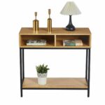 Konsola loft 80 cm dąb naturalny – metalowy stelaż, dwie półki otwarte