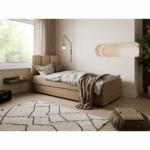 To łóżko tapicerowane to idealny wybór do sypialni, pokoju młodzieżowego i pokoju gościnnego. Zachwyca dopracowanym zagłówkiem, miękką tkaniną i przestrzenią do przechowywania, która pomieści całą pościel, koce, a nawet sezonowe rzeczy.