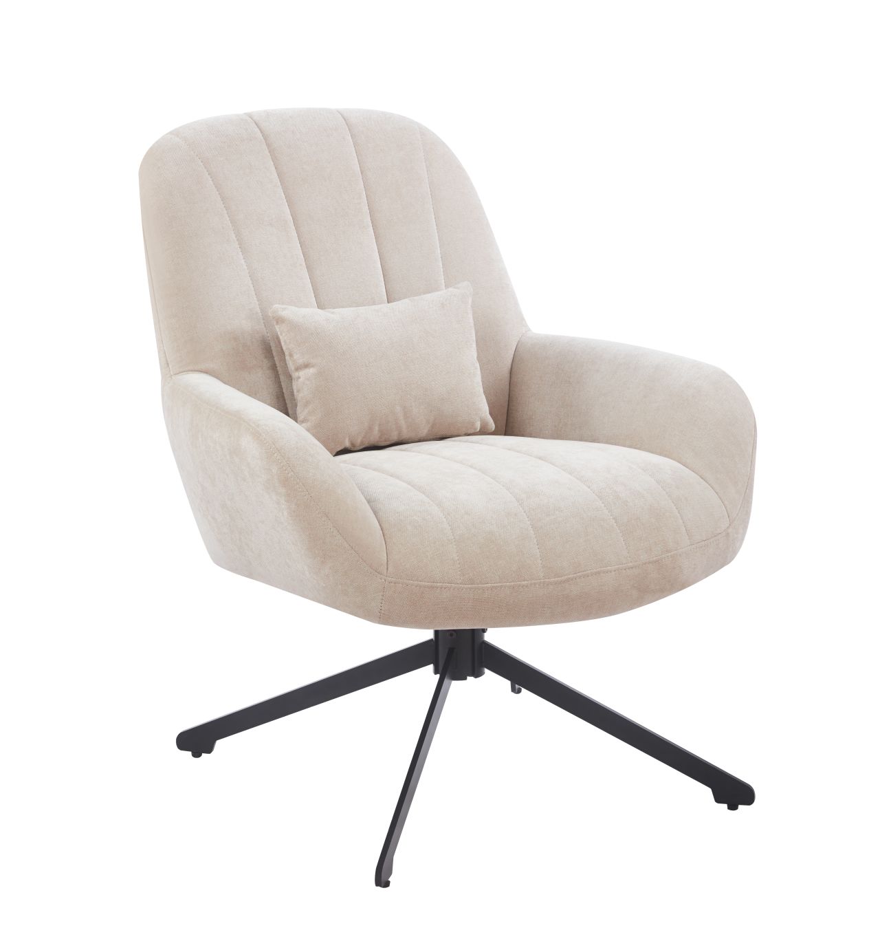 Nowoczesny obracany fotel wypoczynkowy 360° to stylowe i funkcjonalne rozwiązanie do salonu, sypialni lub domowej strefy relaksu. Tapicerowany elegancką tkaniną Maloy w kolorze beżowym, fotel wnosi do wnętrza lekkość, ciepło i ponadczasowy charakter.