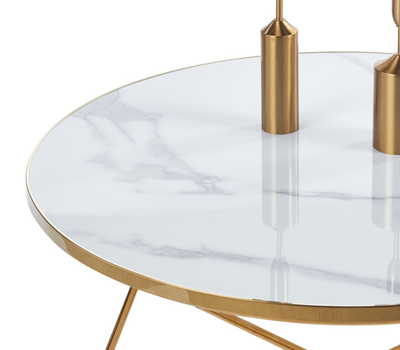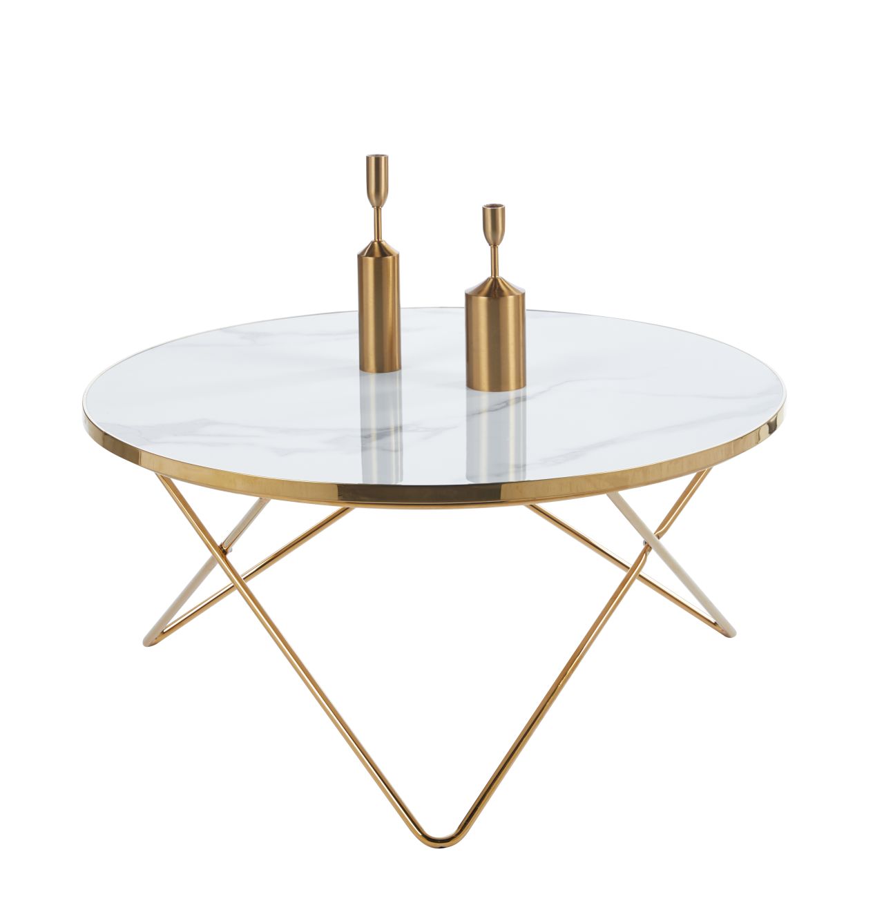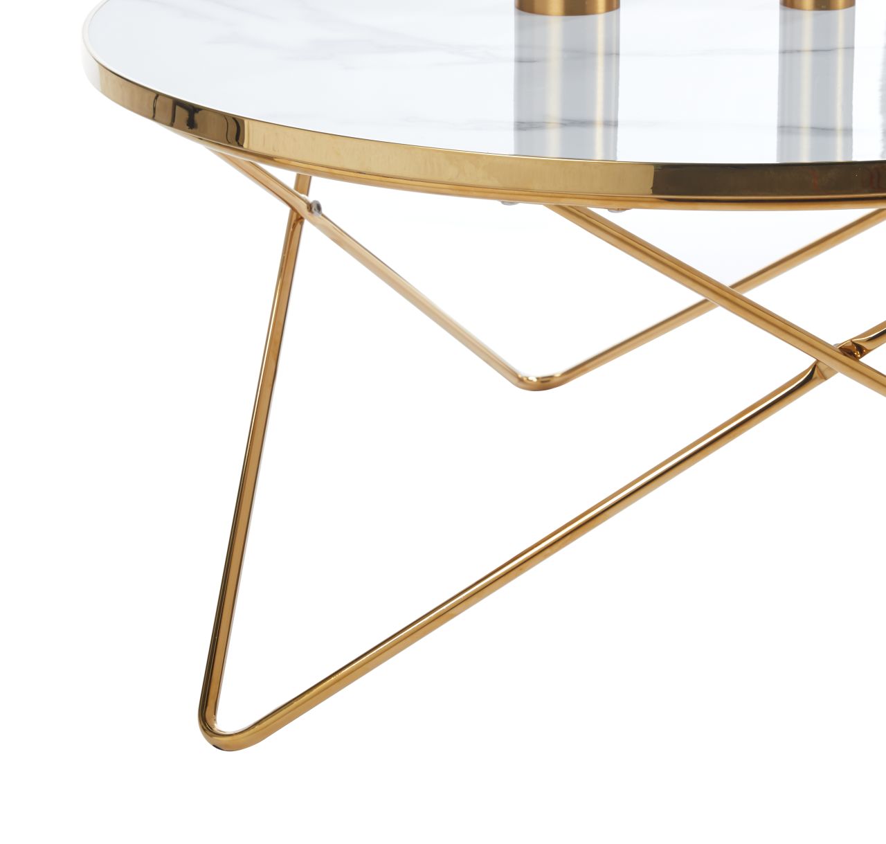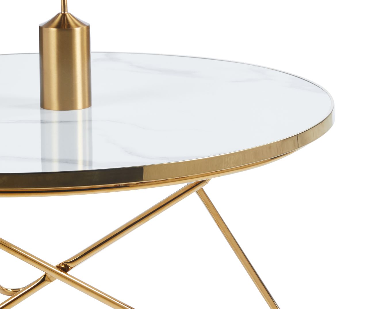 Okrągły stolik kawowy marmur biały – złota metalowa podstawa, nowoczesny glamour