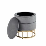 Pufa z pojemnikiem na złotym stelażu to połączenie estetyki, wygody i praktycznego zastosowania. Idealny wybór dla osób poszukujących designerskiej pufy, która łączy dekoracyjny wygląd z codzienną funkcjonalnością.