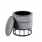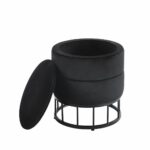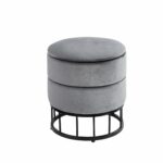 Pufa Velvet z Pojemnikiem 37 cm – Okrągła, Metalowy Stelaż, Nowoczesna