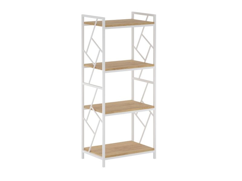 Regał o wysokości 139,5 cm oferuje cztery pojemne półki, które doskonale sprawdzą się do przechowywania książek, dekoracji, roślin, segregatorów czy akcesoriów biurowych. Stabilna konstrukcja z metalowymi wzmocnieniami zapewnia trwałość oraz bezpieczeństwo użytkowania.