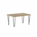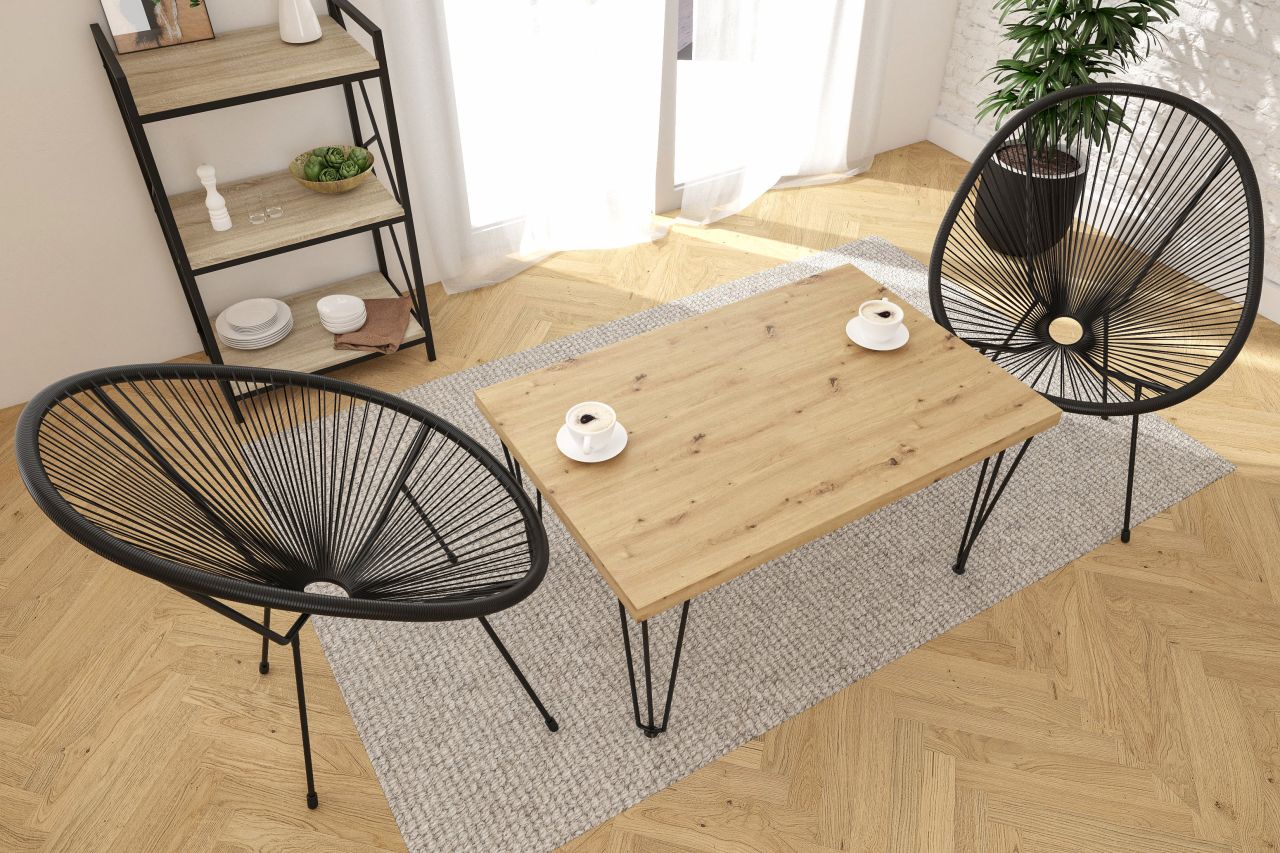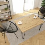 Nowoczesny stolik kawowy prostokątny 101×67 cm to idealne rozwiązanie do salonu, które łączy funkcjonalność z modnym designem loftowym. Blat w kolorze dąb artisan o solidnej grubości 3,8 cm wykonany z trwałej płyty laminowanej prezentuje się naturalnie i elegancko, a obrzeża wykończone tworzywem ABS zwiększają odporność na uszkodzenia i wilgoć.