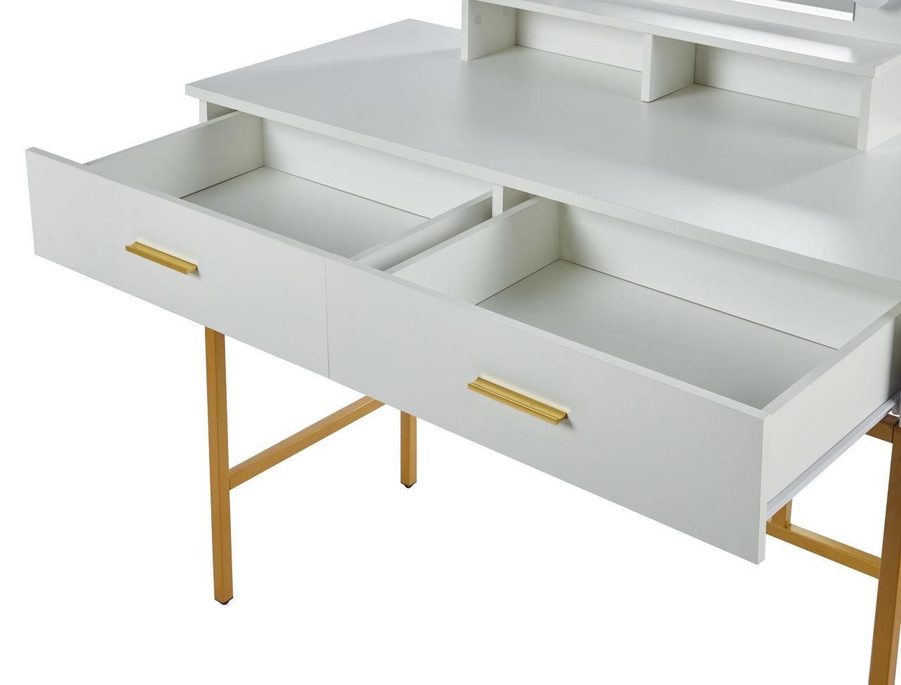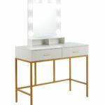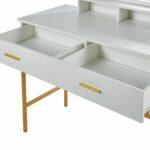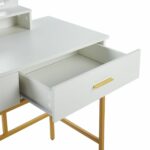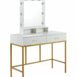 Toaletka z lustrem LED i szufladami – biała ze złotym stelażem