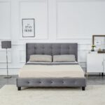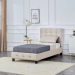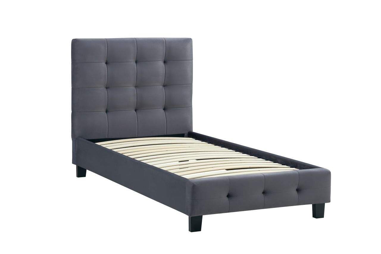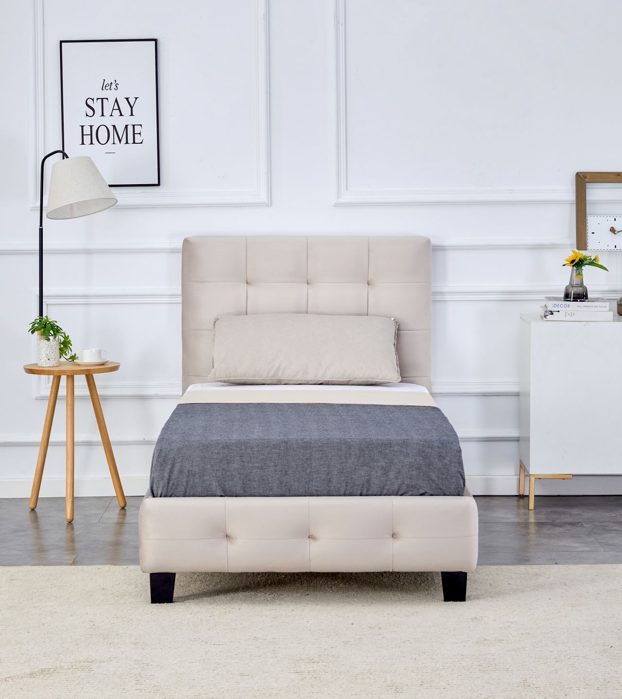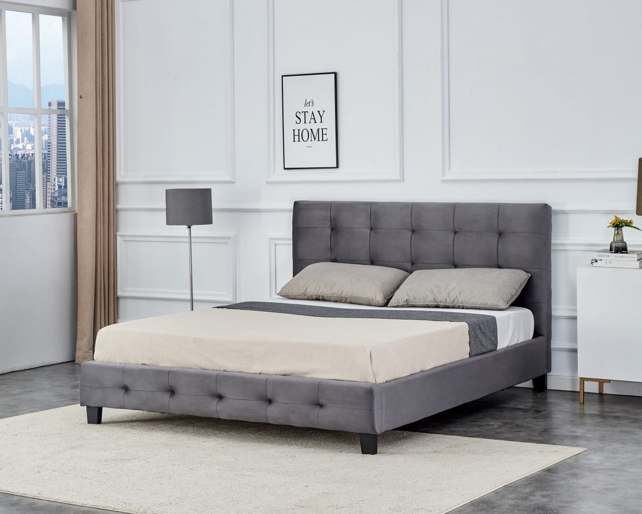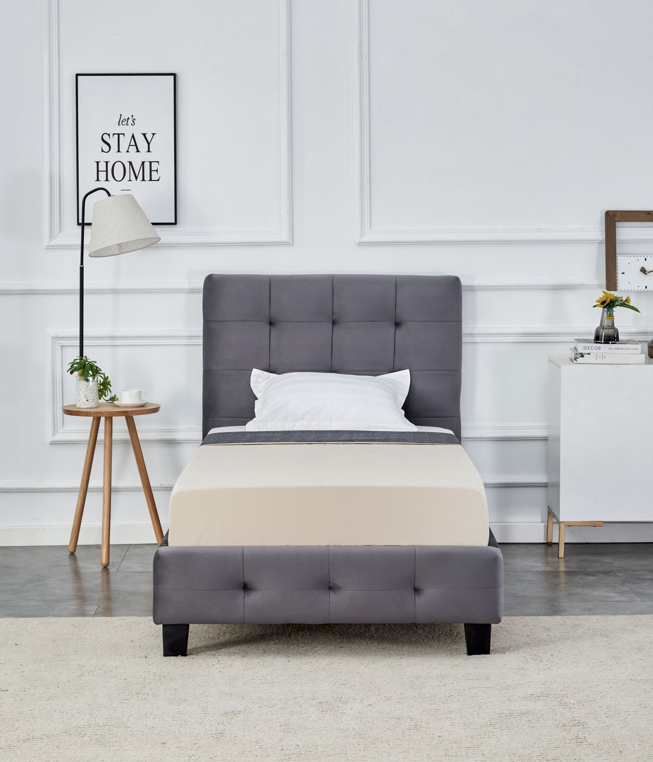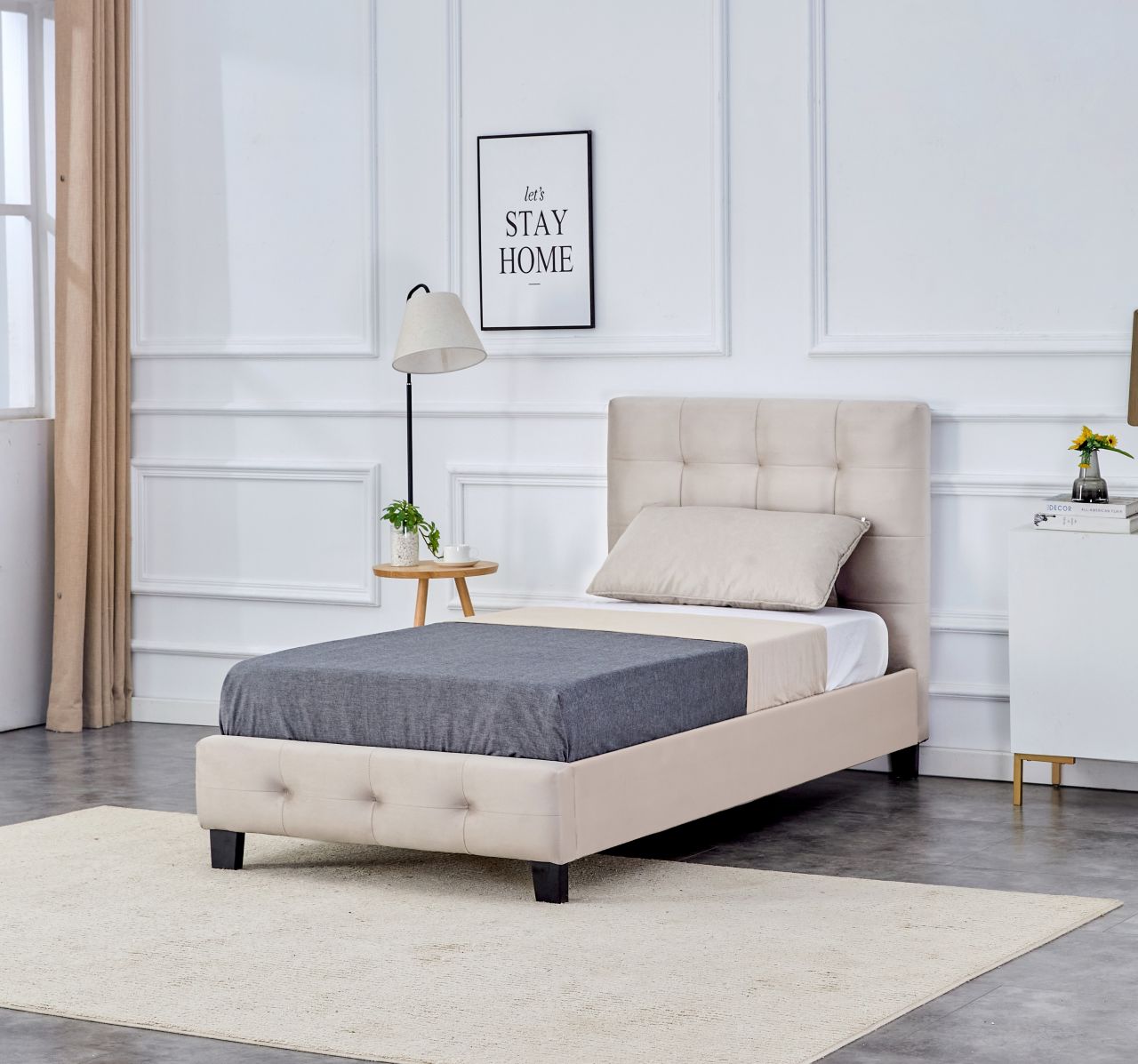 Model dostępny jest w dwóch rozmiarach powierzchni spania: 90×200 cm oraz 160×200 cm, a także w uniwersalnych kolorach tapicerki: szarym i beżowym, dzięki czemu z łatwością dopasujesz łóżko do stylu swojej sypialni – od nowoczesnej po klasyczną. Łóżko sprzedawane jest bez materaca, co pozwala dobrać go indywidualnie do własnych preferencji.