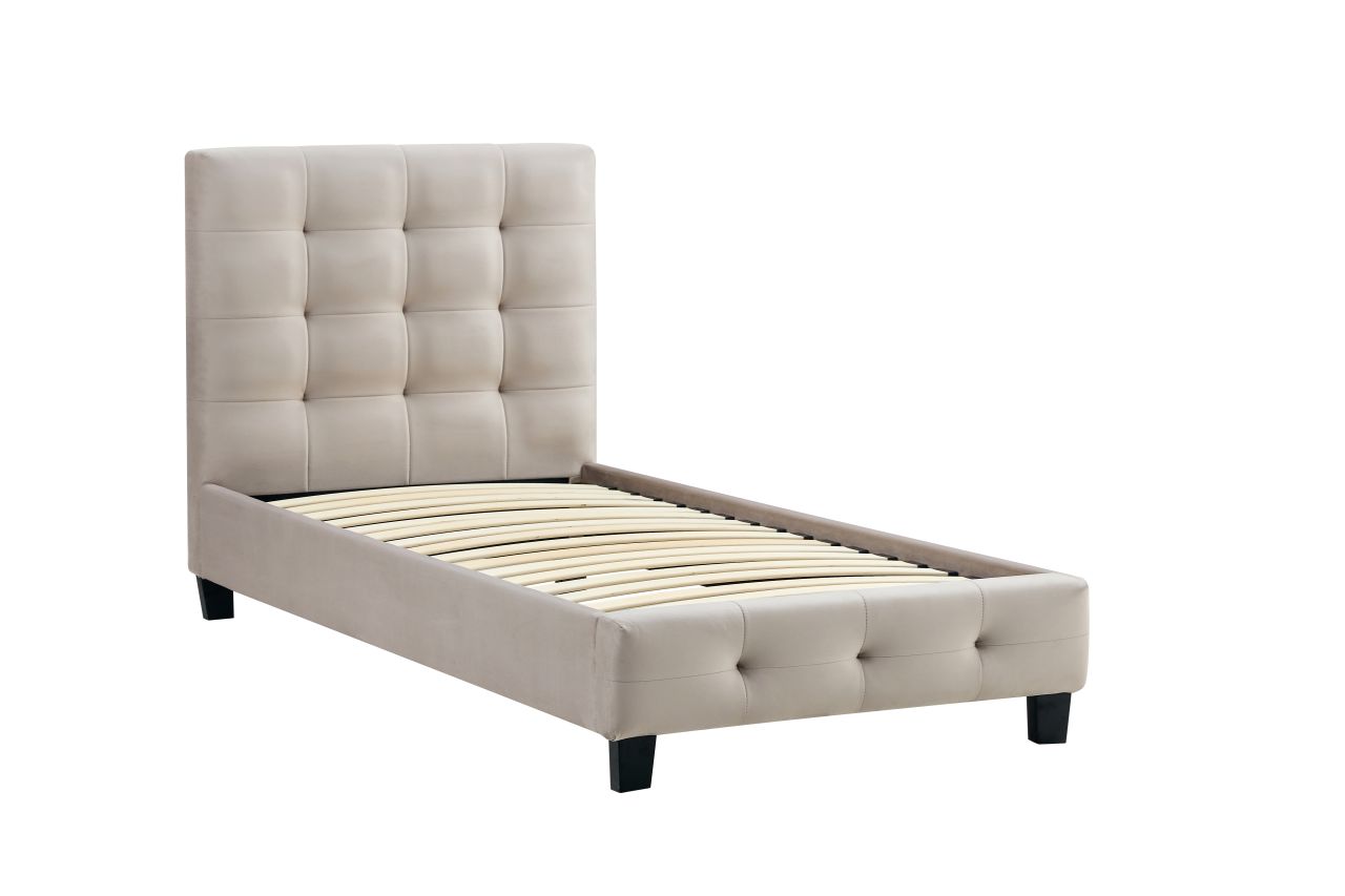 Łóżko tapicerowane velvet z wysokim wezgłowiem 90x200 / 160x200 – szare lub beżowe, stelaż w zestawie
