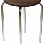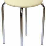 Okrągłe siedzisko o średnicy 35 cm zostało wykonane z gładkiej ekoskóry, która jest łatwa w czyszczeniu, odporna na wilgoć i intensywne użytkowanie. Zapewnia komfort siedzenia oraz estetyczny wygląd przez długi czas. Stabilność konstrukcji gwarantują chromowane metalowe nogi, które są odporne na korozję i nadają całości nowoczesnego charakteru.