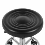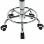 Okrągłe siedzisko o średnicy 43 cm wykonane z wysokiej jakości ekoskóry PCV zapewnia komfort siedzenia oraz jest odporne na zabrudzenia i łatwe w czyszczeniu. Solidna, metalowa podstawa z chromowanym wykończeniem gwarantuje stabilność, trwałość i nowoczesny wygląd. Konstrukcja obrotowa zwiększa swobodę ruchów i wygodę podczas pracy, szczególnie przy czynnościach wymagających częstego zmieniania pozycji.