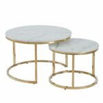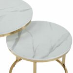 Zestaw 2 stolików kawowych marmur biały – złoty stelaż chromowany, styl glamour