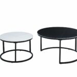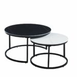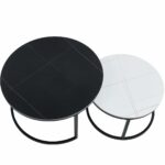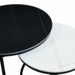 Zestaw stolików kawowych okrągłych – czarny i biały blat ceramiczny, czarny stelaż